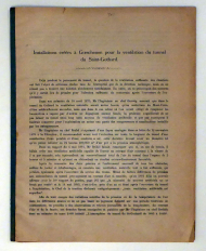 Luzern: o. V., 1899. 7 S., mit 3 ausklappbaren, lithographierten Tafeln. Einband: broschiert. Format: 4°. Rücken mit hellblauem Or.Papierstreifen verstärkt. - Die bei Hofer & Co. in Zürich lithographierten, Tafeln zeigen die Ventilationsanlage für den Gotthardtunnel in Göschenen (2, davon eine getönt) sowie die graphische Darstellung der Luftgeschwindigkeit der Ventilationsanlage (1, getönt)