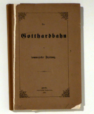 Zch.: Ulrich, 1864. [4], 130, [2], 13 S., Karte durch Fotokopie ersetzt. Einband: Brauner bedruckter Or.Umschlag. Format: gr.8°. Mit ausführlicher Liste der Frachtpreise für Baumwolle, Kaffee, Zucker von verschiedenen europäischen Destinationen durch den Gotthard