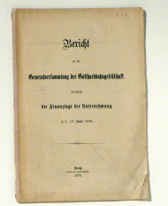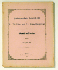 Luzern: Keller, 1893. 92, 35, 6, 12, 10 S., mit zahlreichen Tabellen. Einband: Original broschiert. Format: 4°. Inhalt: An die Generalversammlung der Aktionäre der Gotthardbahn; Jahresrechnung und Jahresrechnungs-Bilanz der Gotthardbahngesellschaft nebst Rechnungen über die Spezialfonds vom Jahre 1893; Beilagen: Statistische Tabellen, Bericht an die Generalversammlung, Bericht an den Verwaltungsrat, Graphische Darstellung der Betriebsergebnisse