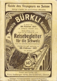 Kursbuch. Gültig bis auf weiteres ab 20. Februar 1917. Zch.: Amberger, 1917. 336 S., mit Anzeigen. Einband: Or.br. Format: kl.8°. Erstausgabe. Zweisprachiger Text (deutsch, französisch)