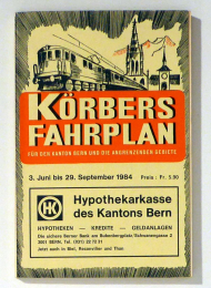 Lausanne: Kursbuch, 1984. 240 S., mit einer schmematischen Karte des Schweizer Eisenbahnnetzes. Einband: Original broschiert. Format: kl. 8°. Reihe: Körbers Fahrplan, Sommer 1984.