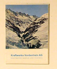 Kraftwerke Sedrun und Tavanasa. Disentis: Druck: Condrau, 1965. 1 Bll., mehrfach gefaltet, Einband: Einblatt. Format: 105 x 30 cm; 10,5 x 15 cm (bxh). Erstausgabe. Aufwendig gestalteter Prospekt über die Wasserkraftwerke am Vorderrhein. Eigner der Elektrizitätswerke sind, neben den örtlichen Gemeinen, die Nordostschweizerischen Kraftwerke AG, Baden.Mit Planung und Bau war 1956 begonnen worden. Mit zahlreichen Karten und Plänen sowie Tabellen und Fotos, mehrfarbig und doppelseitig bedruckt