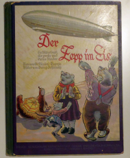 Ein Bilderbuch für grosse und kleine Kinder. Dem Führer des Luftschiffes "Graf Zeppelin" Dr. Dr. ing. e. h. Hugo Eckener und seinen wackeren Begleitern in Erinnerung an die erfolgreiche Arktisfahrt gewidmet. Leipzig: Edwin Freyer, [1932]. [32] S., mit 15 mehrfarbigen ganzseitigen Tefeln und 15 Textseiten mit s/w-Illustrationen. Einband: Original-Halbleinwand mit Deckelillustration. Format: 4°. Erstausgabe. Die Geschichte der Begegnung der Familie Eisbär mit dem Zeppelin auf Polarfahrt. Ausserst selten