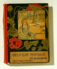 Из воспоминаний раннего детства [Aus den Erinnerungen an die frühe Kindheit]. 5. Auflage. S-Peterburg: Devrien, 1905. 290, II S., mit farbiger Deckel- und zahlreichen s/w Illustrationen nach Zeichnungen von E.S. Zarudnaja-Kavos. Einband: Original-Halbleinwand. Format: 8°.