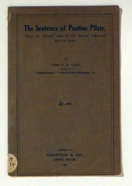 being an alleged copy of the formal judgment against Jesus. London: Grafton, 1922. 11 S., Einband: Original-Broschur. Format: gr.8°. Mit einer eigenhändigen, datierten Signatur auf dem Vorsatzblatt. Der Sammler und Spezialist für frühe spanische Drucke untersucht zwei Darstellungen des Urteils von Pontius Pilatus in einem spanischen Werk aus dem 16. Jahrhundert