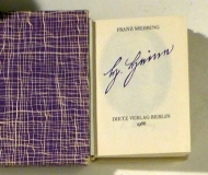 Bln.: Dietz, 1986. 231, (3) S., mit einem Porträt-Medaillon (Franz Mehring) auf einer Tafel. Einband: Or.Ldr. in Schuber. Format: 8,5 x 6 cm. Heller Original-Leder-Einband mit blindgeprägtem Porträt-Medaillon (Heinrich Heine) auf Vorderdeckel, violettem Rückenschildchen in vilett-weissem Original-Schuber