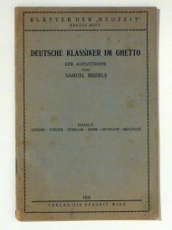 Erster Abschnitt: Griechische und römische Klassiker. Wien: Die Neuzeit, 1930. 16 S., Einband: Original-Broschur. Format: 8°.