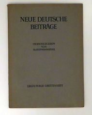 Unter Mitwirkung Anderer hrsg. von Hugo von Hofmannsthal. Zweite Folge, drittes Heft. Mnch.: Bremer Presse, 1923. 125, [1] S., Einband: Original kartoniert. Format: gr.8°. Reihe: Neue Deutsche Beiträge, Erste Folge, drittes Heft, Juli 1923.