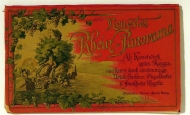 [Mainz-Köln]. Dresden: Dresdner Kunstanstalt vorm. Moritz Zöbel Act. Ges., o.J.. 238 x 23 cm (bxh), gefaltet 16 x 23 cm, Lithogravur in Braunton mit einer Zusatzfarbe in Blau. Einband: Original-Pappband mit Titelverzierungen in Gold. Format: kl.8°, quer. Fünfzehnfach gefaltetes Leporello mit dem Rheinlauf von Mainz bis Köln, links und rechts eingeklinkt in Quadraten, Rechtecken und Kreisen Darstellungen von Orten und deren Sehenswürdigkeiten. Das Leporello beginnt mit einer Ansicht über den Rhein hinweg mit Strassenbrücke (heute Theodor-Heuss-Brücke) und Dom, Köln wird von Deutz aus gezeigt