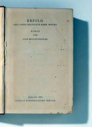 Drei Jahre Geschichte einer Provinz. "Sonderausgabe", 1. - 25. Tausend. Bln.: Kiepenheuer, 1931. 583; 388 S., Einband: Original-Leinwand. Format: 8°. Beide Bände - Erfolg I und Erfolg II - in einem Band