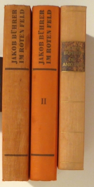 Roman von der Geburt einer Nation. Zch.; Prag: Büchergilde Gutenberg, 1938; 1944; 1951. 3 Bde.; 366; 408; 512 S., Einband: Or.Ln. Format: 8°. Erstausgabe. Band 1 (Der Aufbruch) und 2 (unterwegs) Titel mit roter Typographie und Bandangabe auf Rücken. Band 3 (Ankunft) ohne Bandangabe, mit schwarzem Rückenschildchen. Eine literarische Geschichte der Schweiz in der Nachfolge zur französischen Revolution. Die Buchausstattung des dritten Bandes besorgte Robert S. Gessner