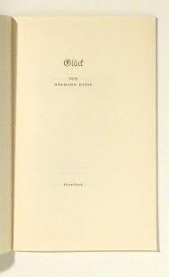 Mileck II, 125. - Von Hermann Hesse signiert auf dem Vortitel. Nummeriertes Exemplar Nummer 96, bestimmt für Gustav Kummer, der einmaligen Auflage von 750 nummerierten Exemplaren. Auf weisses Zerkall-Bütten gedruckt, als Halbfranzband mit Lederrücken in Kapziegenleder gebunden, in Schuber. Selten