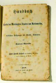 Eine Monatsschrift. Herausgegeben von Heinrich Bosshard. Dritter Jahrgang. Zch.: Zürcher und Furrer, 1855. S. 771-1151, 1 Bl., 1 mehrfach gefaltete Karte, mit 1 Stahlstich-Illustration auf einem gelben Blatt und einer mehrfarbigen Karte. Einband: Halbleder mit goldgeprägtem Rücken. Format: 8°. Dritter Band der insgesamt 124 Briefe aus Nordamerika, die ursprünglich monatlich erschienen. Beiliegend maschinengeschriebene Angaben zur Biographie Heinrich Bosshards, der "Gedenkschrift mit Bildern zur Enthüllung des Denkmals zu Ehren Heinrich Bosshards, Dichter - Sänger - Patriot, Schöpfer des Sempacherliedes. Am 13 Juni 1909 in Highland, Ill., U.S.A." von Albert Peter entnommen