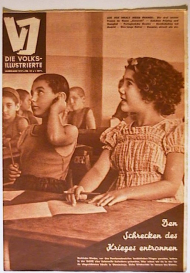 Mit einer Fotomontage von John Heartfield. Die Fotomontage zeigt einen Spanier, einen Marokkaner und einen Wehrmachtssoldaten. Der Text lautet: "Die Mütter an ihre Söhne in Francos Diensten". Das Gedicht in der Montage stammt von Wieland Herzfelde. Prag: Jan Burger, 1936. S. 292 - 303, mit zahlreichen Abbildungen nach Fotografien. Einband: Illustrierter Original-Umschlag. Format: 28 x 38 cm. Reihe: V-I (Volks-Illustrierte).