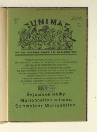 Redaktion Jindrich Veselý. Prag: Bureau centrale de l'Unima, 1930. 40 S.; zweispaltiger Druck, mit 2 montierten farbigen Tafeln (wiederholt) und 44 s/w Abbildungen nach Fotografien und nach einer Zeichnung. Einband: Hln. Format: 4°. Reihe: Unima. Union internationale des Marionettes.