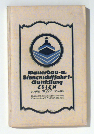 31. März bis 30. April Hrsg. im Auftrage der Ausstellungsleitung von Dipl. Ing. Reisner. Essen: Haasenstein & Vogler, 1922. 134, 68 S., mit zahlreichen s/w Abbildungen nach Fotografien und Zeichnungen. Einband: Or.kt. Format: 8°. Mit zahlreichen Textbeiträgen über Wasserbau, Wasserstrassen, Wasserkraft und Flussschiffahrt, Anzeigen sowie einem mehrfach gefalten Übersichtsplan. Beigelegt Einlasskarte zur Ausstellung
