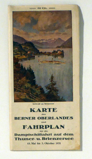 15. Mai bis 3. Oktober 1931. Interlaken: Verkehrsverein des Berner Oberlandes, 1931. 1 Bl., Mit einer Titelillustration nach Zeichnung "Iseltwald am Brienzersee". Format: 61.5 x 42.5 cm (bxh); gefaltet 10 x 21.5 cm.