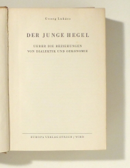 Über die Beziehungen von Dialektik und Oekonomie. Zch. / Wien: Europa-Verlag, 1948. 720 S., Einband: Original-Leinwand. Format: 8°. Erstausgabe. Deutsches Exilarchiv 3681. - Sternfeld/Tiedemann 323. Grundlegendes Werk zum Verständnis der Entwicklungsgeschichte der Hegelschen Philosophie