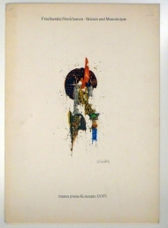 Acht Skizzen von Johnny Friedlaender und vier Manuskripte von K. H. Stockhausen zu "Mikrophonie I". St.gt.-Möhringen: manus presse, 1971. 8 Bl., Einband: ohne Einband. Format: 2°. Reihe: manus presse Konzepte 5/1971.