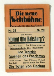 Wochenschrift für Politik, Kunst, Wirtschaft. II. Jahrgang der Wiener Weltbühne, Nr. 28, 13. Juli 1933. Prag-Zch.: Die neue Weltbühne, 1933. 32 S., Einband: Original-Broschur, mit Bauchbinde. Format: 8°. Reihe: Die neue Weltbühne, Nr. 28, 13. Juli 1933.