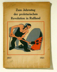 Hamburg: Verlag der Kommunistischen Internationale, 1921. 74 S., mit 2 farbigen Tafeln und 3 Fotos. Einband: Or.br. mit farbiger Deckelillustration. Format: 4°. Enthält Beiträge von Karl Radek, L. Trotzki, N. Lenin, A. Joffe, Clara Zetkin, Bela Kun, A. Thalheimer u.a.