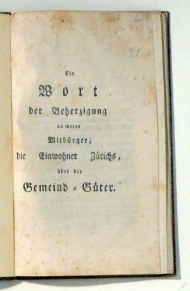 [Zürich]: [s.n.], [1798]. 24 S., Einband: marmorierter Pappband. Format: 8°. gedruckt in Fraktur