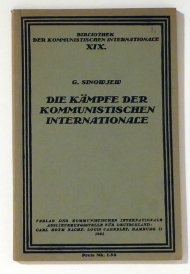 Hamburg: Vlg. der Kommunistischen Internationale; Carl Hoym; Louis Cahnbley, 1921. 56 S., Einband: Gelber bedruckter Or.Umschlag. Format: 8°. Reihe: Bibliothek der Kommunistischen Internationale, V.