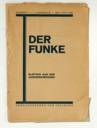 Blätter aus der schweizerischen Jugendbewegung. Zweimonatsschrift. Herausgegeben vom Freibund. Zch.: Freibund, 1927. 23 S., Einband: ungebunden. Format: 8°. Reihe: Der Funke, 1. Jg., Nr. 1, Okt./Nov. 1927.