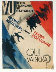 Erstausgabe. Sondernummer der französischen Wochenzeitschrift "Vu" über das Kräfteverhältnis zwischen der rechtsradikalen "Front Nationale" und den Parteien der "Front Populaire" im Jahr vor der Machtübernahme der Front Populaire unter Léon Blum im Jahr 1936. Die 1928 gegründete Zeitschrift Vu gehörte zu den typographisch anspruchsvollen Publikationen Frankreichs, Gründer und Herausgeber war Lucien Vogel