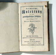 Für die Kunst-Schulen. Mit hoher Approbation. Zusammengebunden mit: [Bodmer]: Geschichte der Stadt Zürich; und: Unterredung von den Geschichten der Stadt Zürich. Zch.: David Bürgkli, 1776; 1774; 1773. 40; 59; 16 S., Einband: Or.Hlpgmt. Format: kl.8°. Drei Schriften im Zusammenhang mit der 1765 angebahnten Reform der zürcherischen Schulen, gedruckt in Fraktur