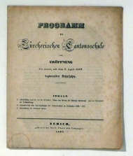 Zch.: Orell, Füssli und Compagnie, 1837. 19 S., Einband: Original-Broschur. Format: gr.8°. Erster Teil von "Programm der zürcherischen Cantonsschule zur Eröffnung des neuen, mit dem 7. April 1837 beginnenden Schuljahrs", separat erschienen