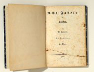 Mit Zeichnungen von H[einrich] Meyer. Zürich: Friedrich Schulthess, [1840]. [9] Bl., Mit 25 Stahlstichen auf Tafeln nach Heinrich Meyer. Einband: Halbleinwand der Zeit. Format: 8°. Weilenmann 636. - Bild und Vers auf einer Seite, einseitig bedruckt. Der Inhalt entspricht den ersten acht Bildern und Gedichten von Corrodis "50 Fabeln und Bilder aus der Jugendwelt"