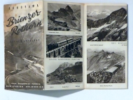 Berner Oberland: Panorama.. Aarau: Trüb & Cie, [um 1950]. 1 Bl., Format: 60 x 39 (bxh); gefaltet 10 x19,5 cm. Mit 18 s/w Abbildungen nach Fotografien von Robert Würgler und Hans Kaspar Maeder, Rückseite farbiges Panorama (360°) nach einer Zeichnung von Louis Koller, darin eingeklinkt noch eine Übersichtskarte von Thuner- und Brienzersee. Herausgegeben von der Brienz-Rothorn Bahn und dem Hotel Rothorn-Kulm