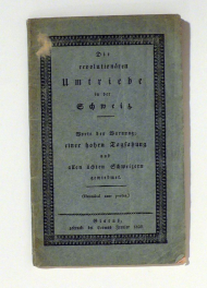 Worte der Warnung; einer hohen Tagsatzung und allen ächten Schweizern gewiedmet. (Hannibal ante portas). Glarus: Cosmus Freuler, 1823. 30 S., Einband: Or.br. Format: 8°. Barth 5636. Ohne Autor erschienenene Schrift von Ferdinand Johann Wit (1800-1868), ein deutscher "politischer und litterarischer Abenteurer" (ADB)