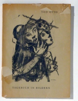 Tagebuch in Bildern. Mit einem Vorwort von Bertolt Brecht. Zch.: Europa, [1949]. 4 Bll. ; 74 Tafeln ; 1 Bl., mit einer Deckelillustration von Teo Otto auf dem Einbanddeckel. Einband: Original-Broschur, mit Pergaminumschlag. Format: 4°. Mit einer mehrzeiligen datierten eigenhändigen Widmung und Signatur von Teo Otto auf Vorsatz. Das Buch erschien gleichzeitig bei Volk und Welt (Berlin, DDR) und, mit abweichender Umschlaggestaltung, dem Europa Verlag. Die bedachte war, wie Teo Otto, während des Zweiten Weltkriegs in einem Flüchtlingslager in der Schweiz