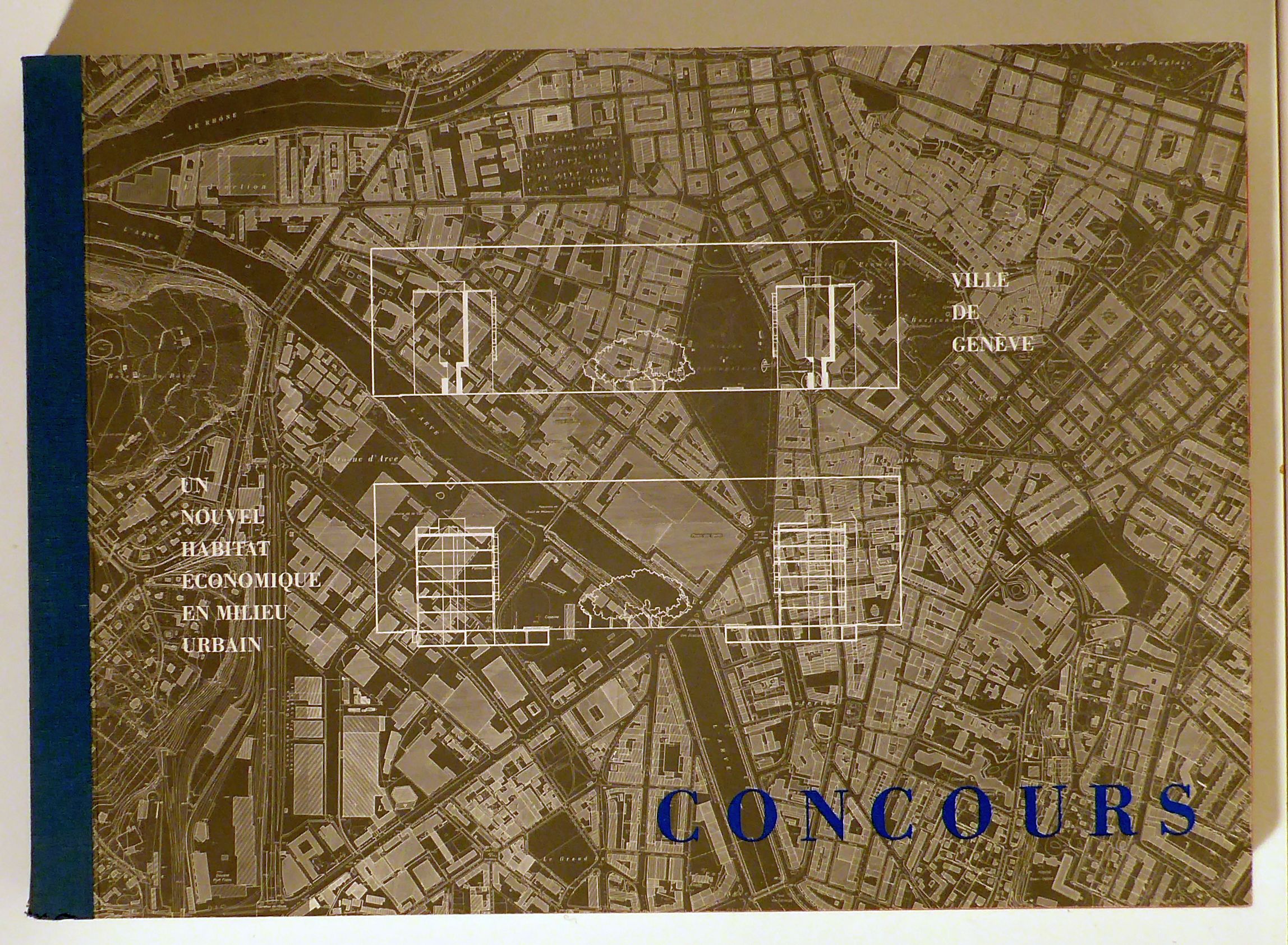 Genève: Ville de Genève, 1985. nicht paginiert (ca. 200 Bll.), mit Abbildungen und zahlreichen Plänen. Einband: Original-Halbleinwand. Format: 29,5 x 42 cm. "Ce recueil contient les projets présentés au concours. Il donne aux professionels une vue d'ensemble des propositions et des démarches suivies pour répondre aux voeux de la Ville de Genève de construire un nouvel habitat économique en milieu urbain"