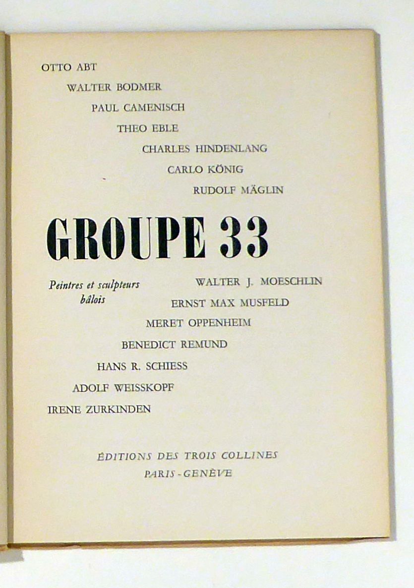 Peintres et sculpteurs bâlois. Paris, Genève: Editions des Trois Collines, 1950. 10 S., mit 28 teils farbigen Tafeln. Einband: Or.kt. Format: 8°. Dreisprachig (französisch, englisch und deutsch). Vertreten sind Otto Abt, Walter Bodmer, Paul Camenisch, Theo Eble, Charles Hindenlang, Carlo König, Rudolf Mäglin, Walter J. Moeschlin, Ernst Max Musfeld, Meret Oppenheim, Benedict Remund, Hans R. Schiess, Adolf Weisskopf und Irene Zurkinden. Mit einer Einleitung von Géo-Charles (das ist Charles Louis Prosper Guyot) und Georg Schmidt(d.i. Mehrfarbige Deckelillustration von Irene Zurkinden.