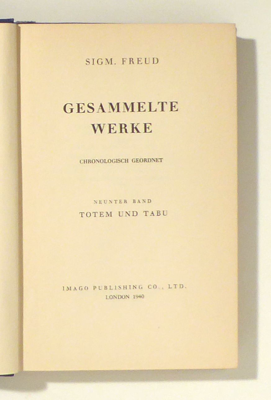 Gesammelte Werke, chronologisch geordnet, neunter Band. London: Imago, 1940. 205, [6] S., Einband: Original-Leinwand. Format: 8°. Reihe: Gesammelte Werke, chronologisch geordnet, neunter Band.
