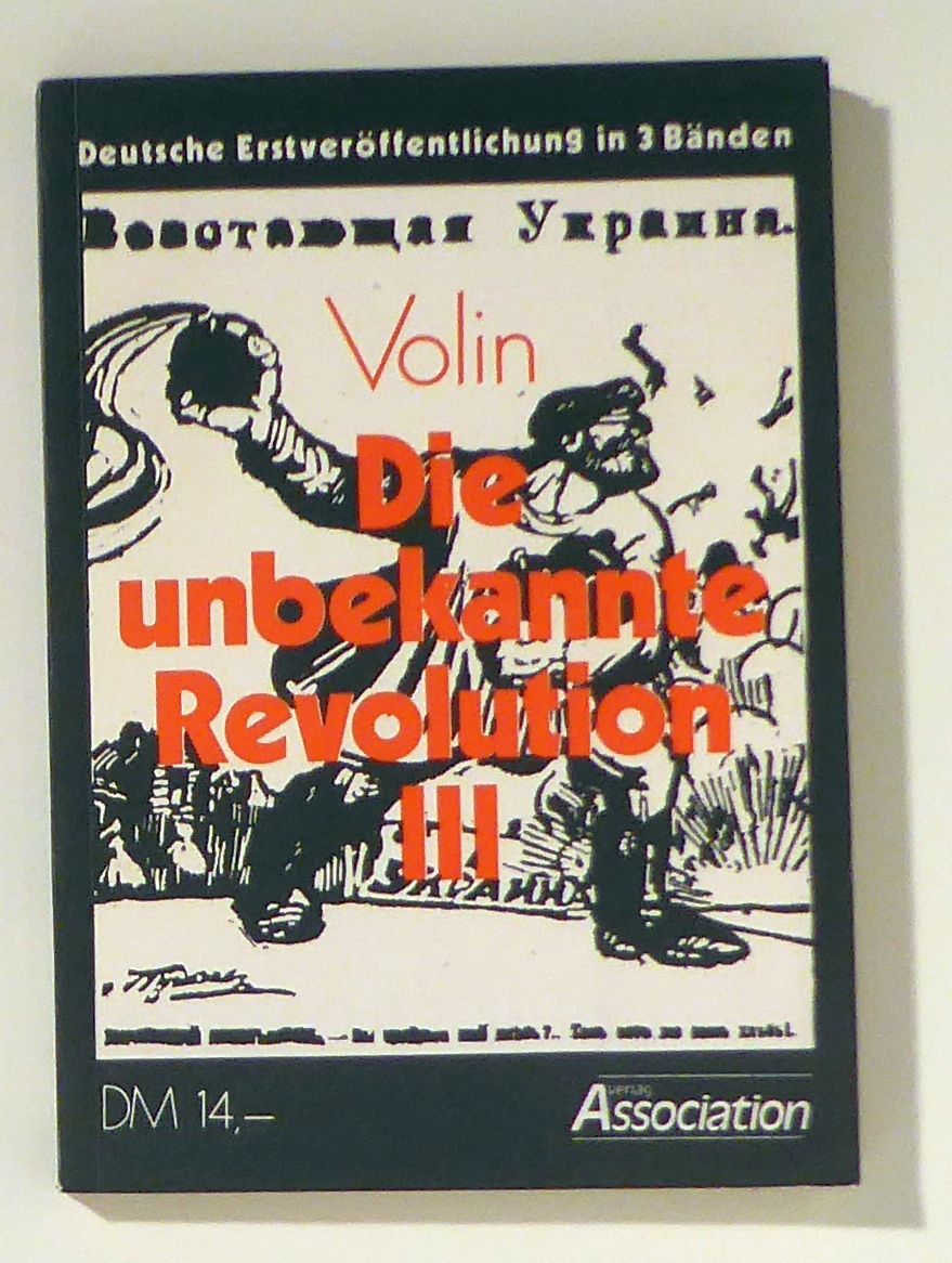 Übersetzung: Wolf H. Leube. Hamburg: Association; Libertäre Assoziation, 1976; 1983. 2 Bde., 254, (2); 220, (4); 189 S., mit einem Porträt von Volin (d.i. Vsevolod Michajlovič Ejchenbaum) im ersten Band. Einband: Or.kt. Format: 8°. Band I Neuauflage 1983, Band III deutsche Erstausgabe. Band II der dreibändigen Ausgabe fehlt