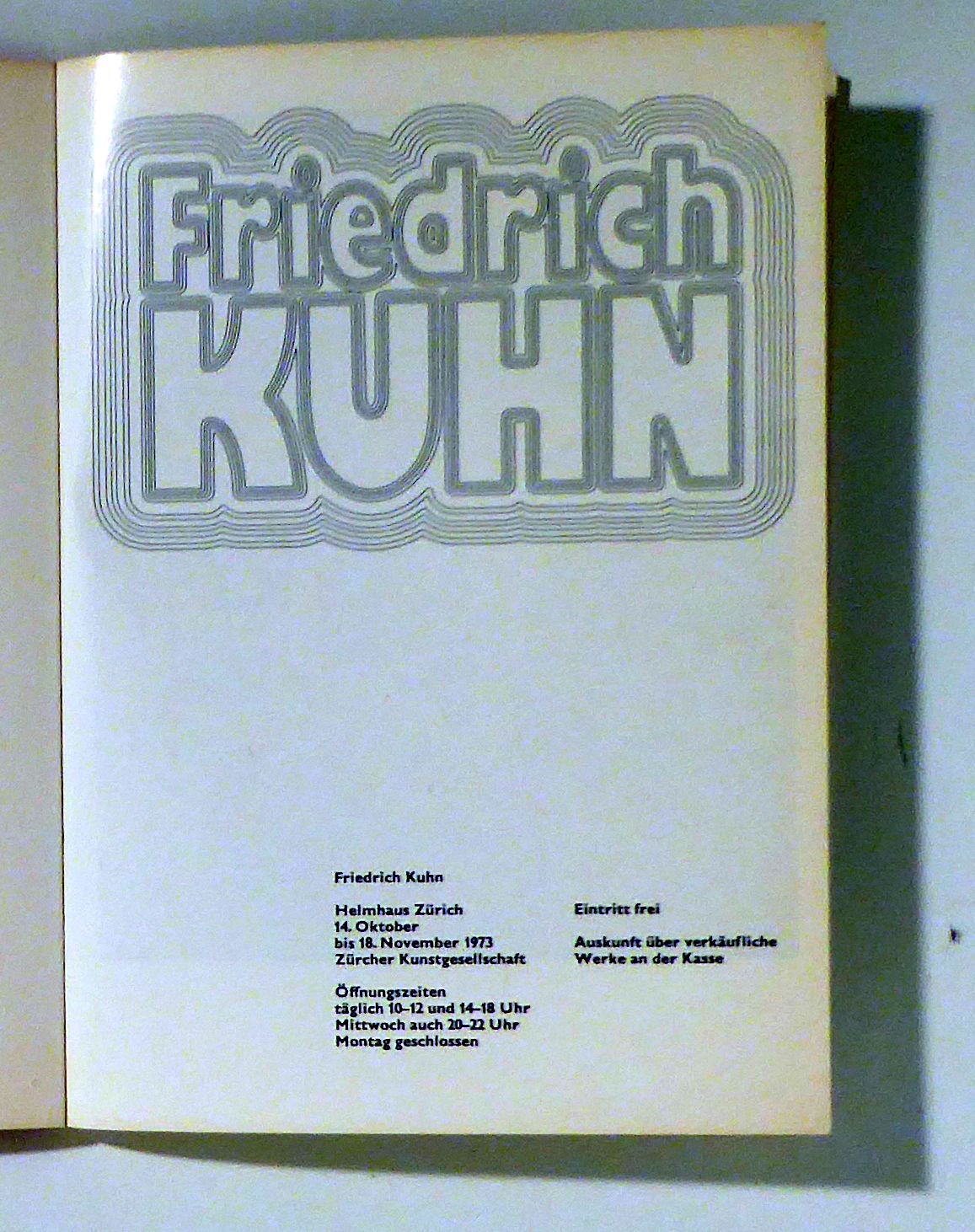 [Ausstellungskatalog] Helmhaus Zürich, 14. Oktober bis 18. November 1973. Redaktion Felix Andreas Baumann. Zch.: Zürcher Kunstgesellschaft, 1973. [48] S., mit zahlreichen teils farbigen Abbildungen. Einband: Or.kt. Format: gr.8°.