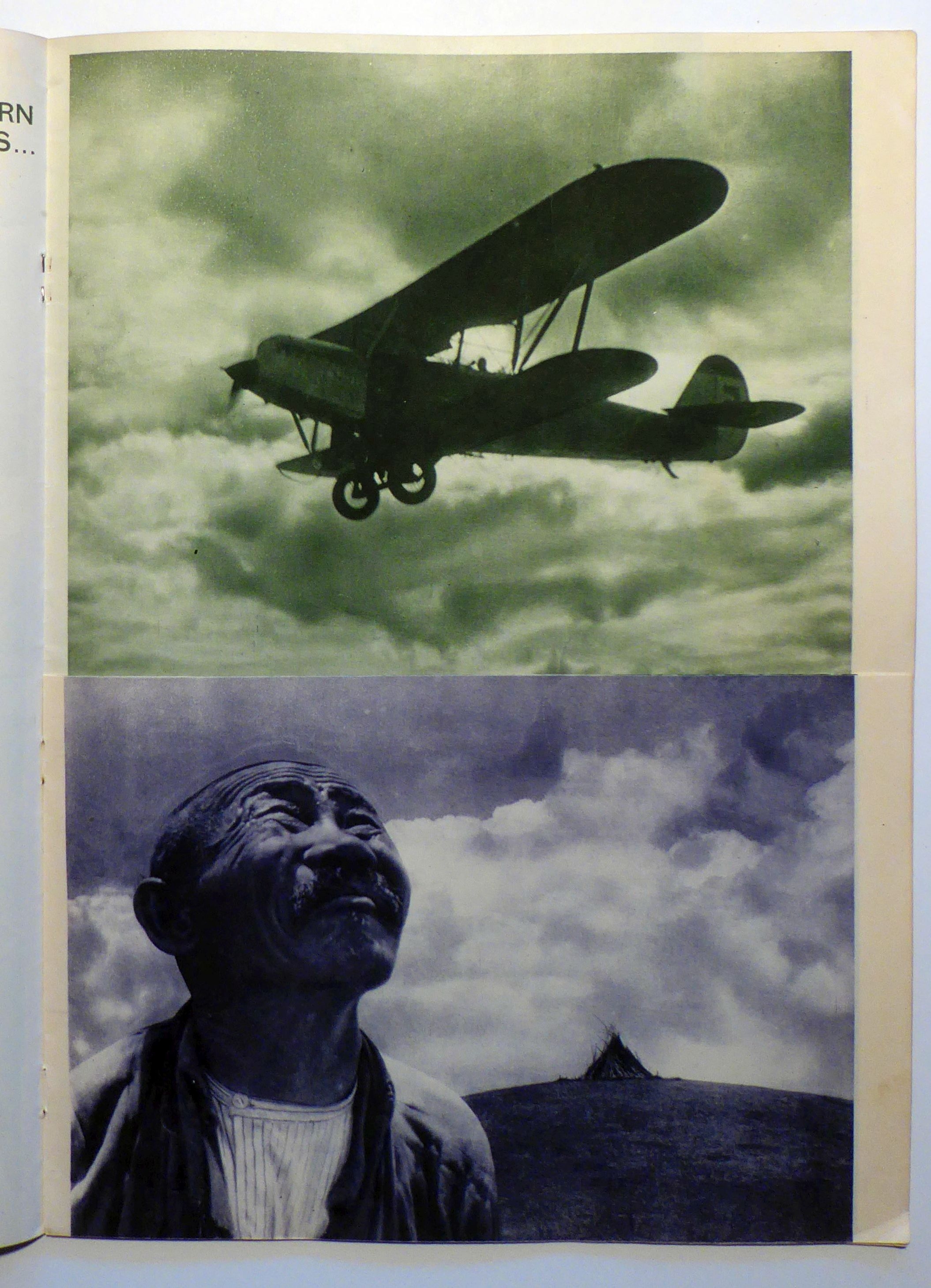 Das Heft ist dem zehnjährigen Jubiläum Burjat-Mongoliens gewidmet. Montage von I. Urasow. Übersetzung von A. Grossmann, Die mittleren 4 Blätter nur halb hoch, sie zeigen sozursagen die Sicht aus den Flugzeugen, die oben auf den Seiten vorher und nachher abgebildet sind. Die Monatsschrift «USSR im Bau» erschien in vier Sprachen (deutsch, französisch, englisch, spanisch) von 1930 bis 1941 und noch einmal 1949, in vier Sprachen (deutsch, französisch, englisch, spanisch). Zum Redaktionskollegium der von Maxim Gorkij gegründeten Zeitschrift gehörten unter anderen Georgij Pjatakov und Michail Kol’cov, einzelne Nummern erschienen unter der Leitung von Aleksandr Rodčenko oder El’ Lisickij. Viele Nummern wurden von Nikolaj Stepanovič Trošin gestaltet. Hauptsächliches Gestaltungsmerkmal war die Fotomontage, mit Beiträgen von Fotografen wie Maks Al’pert, einem der Begründer der Fotoreportage, Arkadij Šajchet und anderen. Jedes Heft war einem bestimmten Thema gewidmet