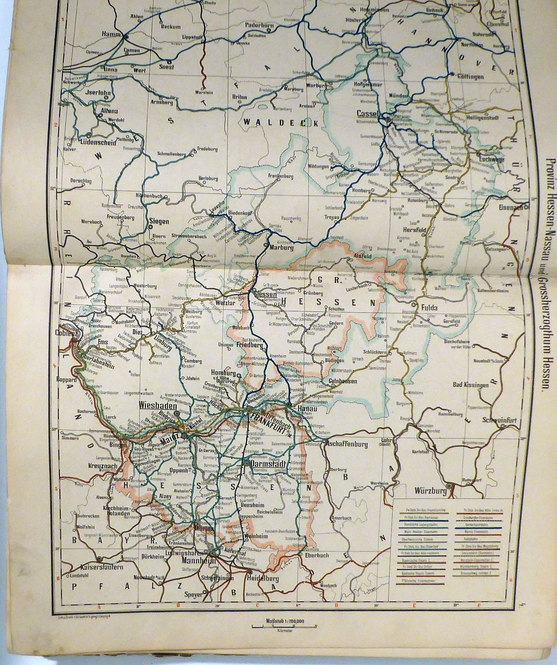 Dargestellt in 62 nach politischen Gebieten, Provinzen und Departements getrennten Spezial-Karten nebst einem vollständigen Stations-Verzeichnis. Zehnte, durchaus neue und verbesserte Auflage. Lpz.: Pfau, [1887]. 18, 11, 14, 5, 4 S., mit 62 farbigen Karten auf Tafeln. Einband: Kt. Format: 4°.