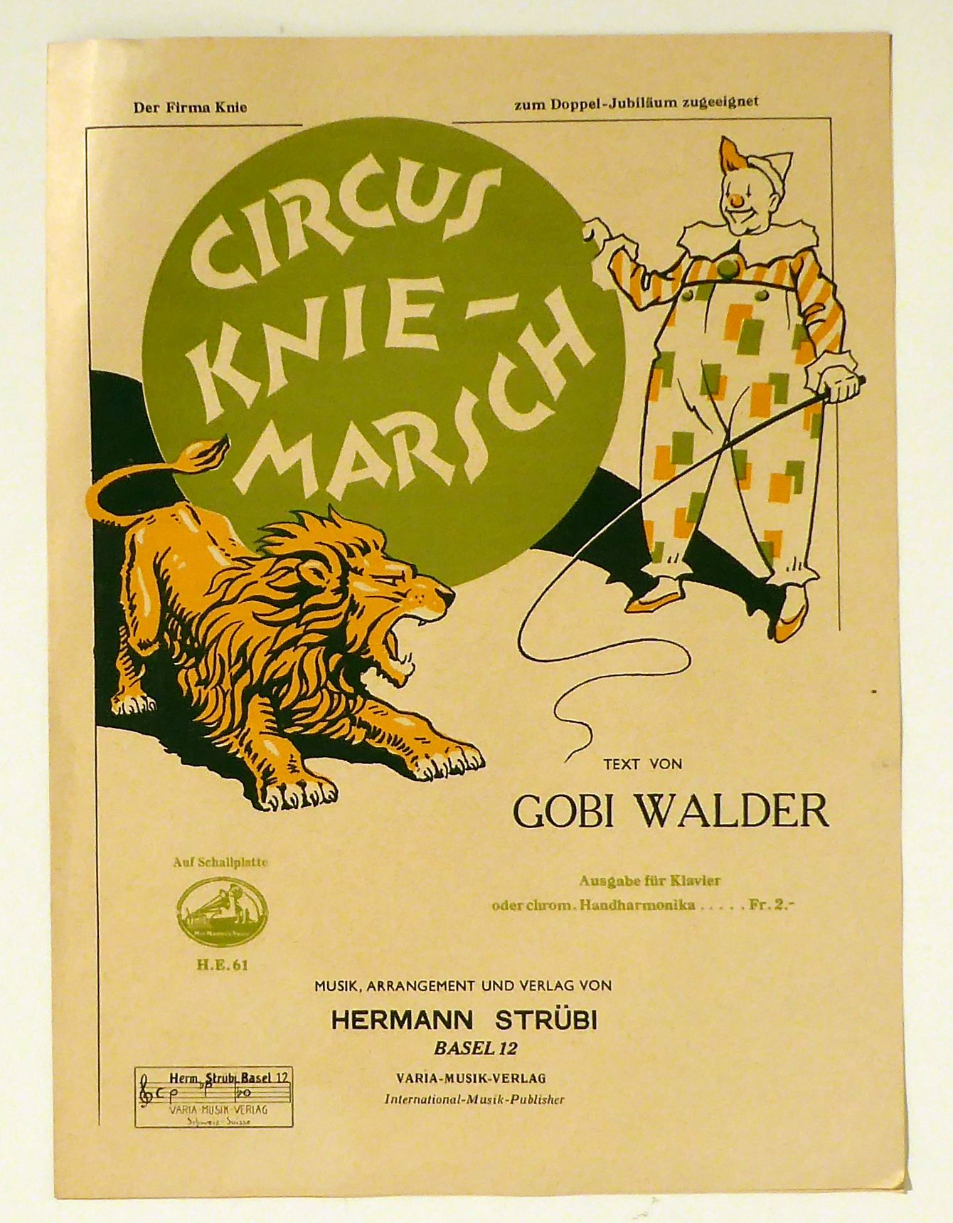 Text von Gobi Walder. Musik, Arrangement und Verlag von Hermann Strübi. Basel: Varia-Musik-Verlag, 1940. 4 S., Einband: Doppelblatt. Format: 3°. "Der Firma Knie zum Doppel-Jubiläum zugeeignet". Ausgabe für Klavier oder chrom. Handharmonika