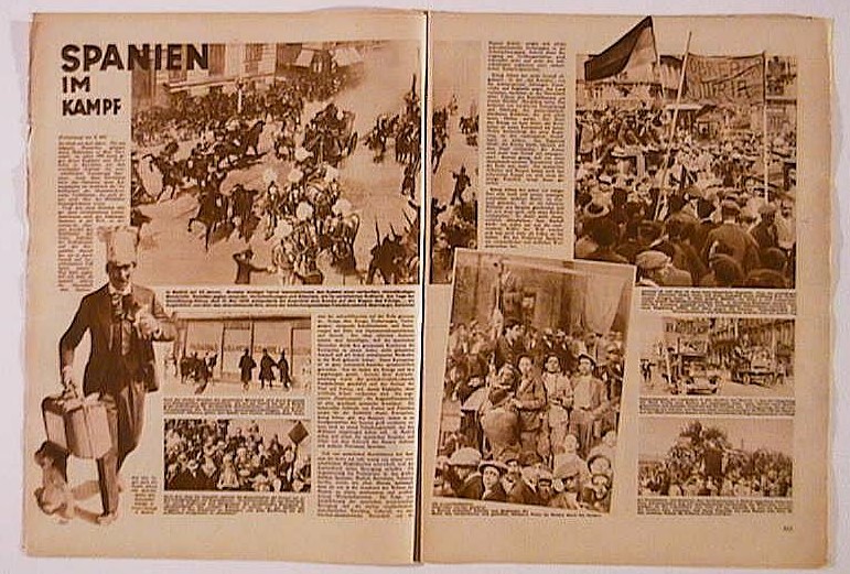 Mit einer dreiseitigen Reportage: " Die Blutchronik der Spanischen Könige. Spanien im Kampf". Zudem ein Bildbericht: "Maxim Gorki spricht zu den Moskauer Arbeiterkorrespondenten". Bln.: Neuer Deutscher Verlag, 1931. S. 350 - 367, mit zahlreichen Abbildungen nach Fotografien. Einband: Illustrierter Original-Umschlag. Format: 28 x 38 cm. Reihe: A-I-Z (Arbeiter-Illustrierte-Zeitung).