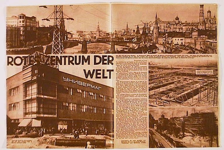 Sondernummer: "Moskau, das Gesicht der roten Hauptstadt" (im Innern dazu mehrseitige Reportagen). Zudem ein Gedicht: "Moskau- die Stadt Lenins" von Johannes R. Becher. Bln.: Neuer Deutscher Verlag, 1931. S. 670 - 687, mit zahlreichen Abbildungen nach Fotografien. Einband: Illustrierter Original-Umschlag. Format: 28 x 38 cm. Reihe: A-I-Z (Arbeiter-Illustrierte-Zeitung).