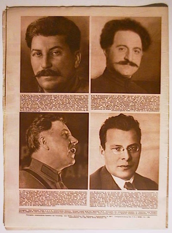 "Zum 14. Jahrestag der Russischen Revolution am 7. November 1931" (im Innern eine dreiseitige Bildreportage). Zudem: "Friedrich Hegel. Zum 100. Todestag" von Paul Friedländer. Auf der hinteren Umschlagseite Abbildungen von Stalin u.a.. Bln.: Neuer Deutscher Verlag, 1931. S. 902 - 919, mit zahlreichen Abbildungen nach Fotografien. Einband: Illustrierter Original-Umschlag. Format: 28 x 38 cm. Reihe: A-I-Z (Arbeiter-Illustrierte-Zeitung).