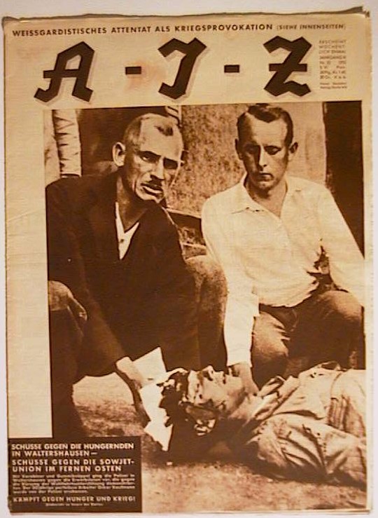 Mit einer zweiseitigen Bildreportage: "Welt von oben" mit Flugbildern verschiedener Grossstädte. Zudem ein Artikel: "Höchste Gefahr- höchste Solidarität" mit Abbildungen von Gorki, Einstein und Upton Sinclair.. Bln.: Neuer Deutscher Verlag, 1932. S. 530 - 551, mit zahlreichen Abbildungen nach Fotografien. Einband: Illustrierter Original-Umschlag. Format: 28 x 38 cm. Reihe: A-I-Z (Arbeiter-Illustrierte-Zeitung).