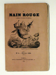 Pamphlet politique et mensuel. N° 3 - Févier 1850. Montmartre (Paris): Pilloy, 1850. S. 65-96, mit einem Holzschnitt als Deckel- und Titelillustration (ein mit Krone, Peitsche und Hampelmann jonglierender Zwerg). Einband: illustr. Or.br. Format: gr.8°. Reihe: Le Nain Rouge.