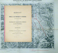 Auszug aus den Verhandlungen des Verwaltungsrates der Gotthardbahn vom 17. November über den vorgenannten Bericht. Luzern: Gotthardbahn, 1893. 20 S., Format: 4°. Rücken mit rosafarbenem Or.Lackpapierstreifen verstärkt. - Mit einer dreifarbigen, doppelblattgrossen Karte "Uebersicht über die nördlichen Anschlüsse an die Gotthardbahn" Maasstab (sic!) 1 : 100 000; sowie lose beigelegt "Übersichtskarte des Aargauischen Südbahnprojektes Rupperswil - Wohlen - Immensee; Brugg - Wohlen" im Maasstab 1 : 250 000 (= Ueberdruck 1872, Eidg. Staatsbureau) mit kleinem Blindstempel am untern rechten Kartenrand