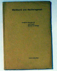 Drei Vorträge gehalten an der Jahrestagung des Schweizerischen Werkbundes zu Basel im Herbst 1943. Basel: Holbein-Verlag, 1944. 54, [1] S., Einband: Original-Broschur. Format: 8°. Vorträge von Georg Schmidt, Jean Mussard, Berchtold von Grüningen. Mit einem Vorwort von Egidius Streiff, Geschäftsführer des SWB